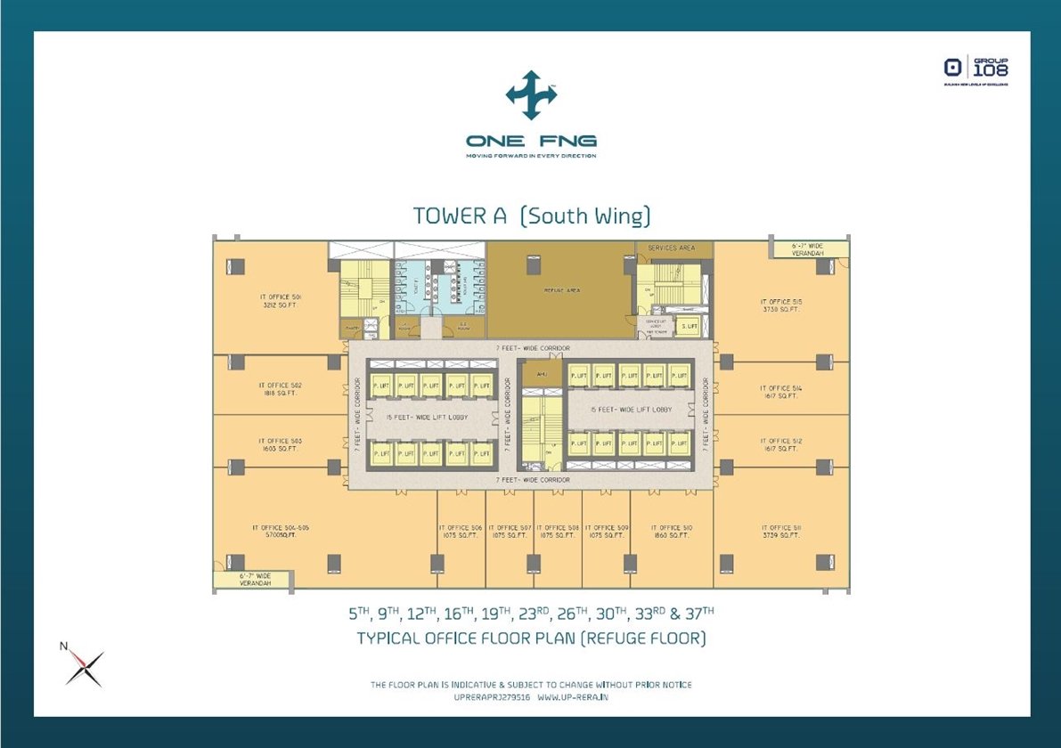 In the heart of the bustling Sector 142 Noida, Group 108 One FNG stands as an example of innovation and untapped business potential. Spread across an impressive 14.46 acres, One FNG Noida boasts two towering structures, one rising to an impressive G+37 floor and the other to G+15, complemented by low-rise retail blocks at G+1. One FNG offers around 16 lakh sqft area for office space and 4 lakh sqft area for high street retail. These towers are designed to withstand earthquakes, and Tower-B with 21 high-speed elevators, has one of the largest floor plates in Noida, providing opportuntiy for leasing activity.